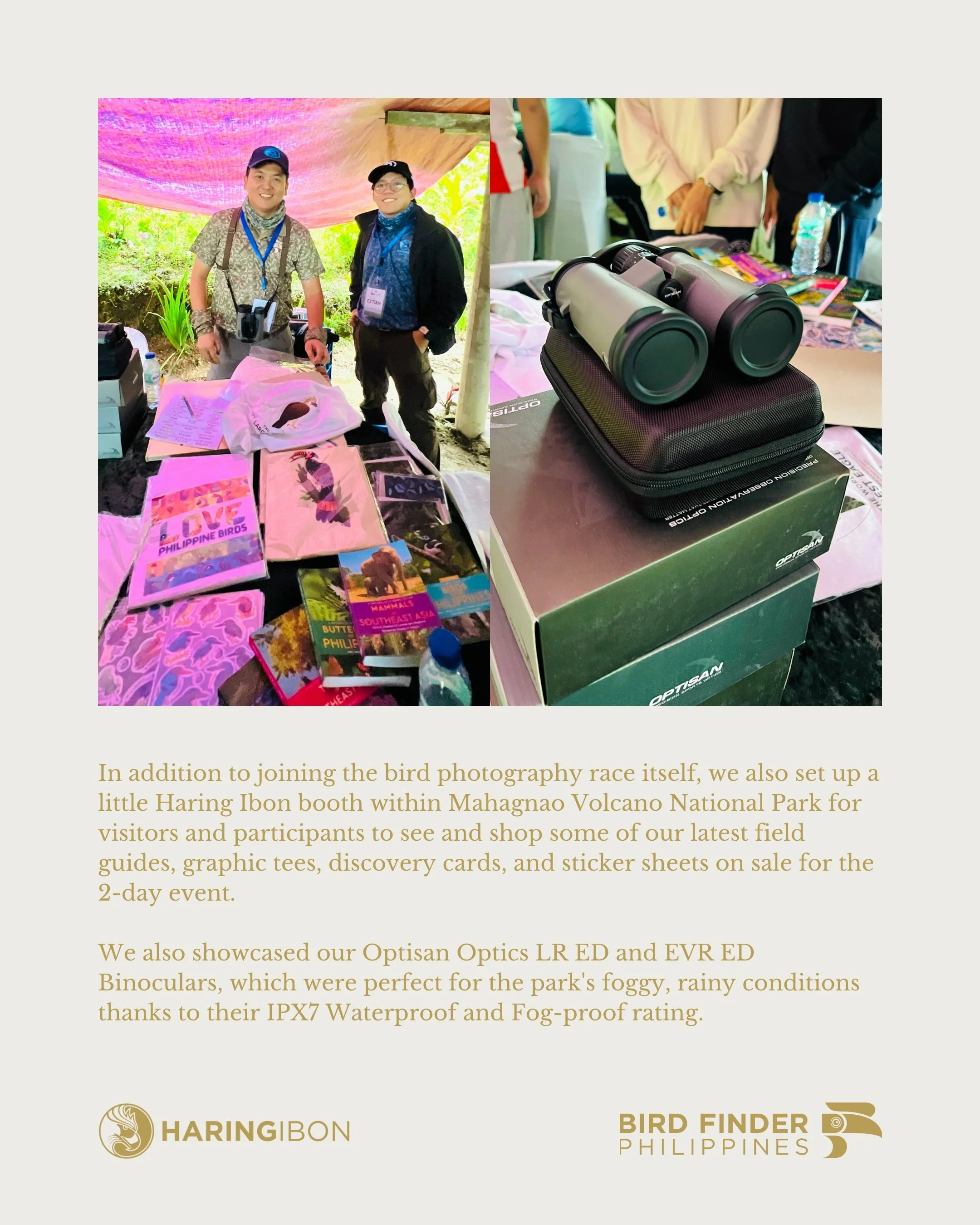 In addition to joining the bird photography race itself, we also set up a little Haring Ibon booth within Mahagnao Volcano National Park for visitors and participants to see and shop some of our latest field guides, graphic tees, discovery cards, and sticker sheets on sale for the 2-day event.