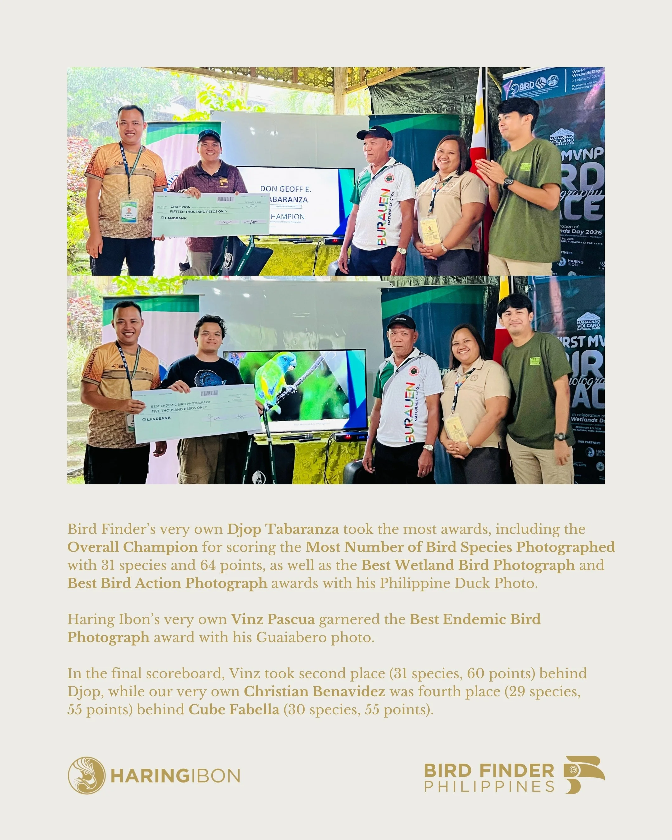 Haring Ibon and Bird Finder Philippines joined Leyte's first-ever bird photography race held in Mahagnao Volcano Natural Park from February 2 to 3, 2026, organized by the Protected Area Management Board and Protected Area Management Office of Mahagnao Volcano National Park, led by Protected Area Superintendent Wincel Nuñez.